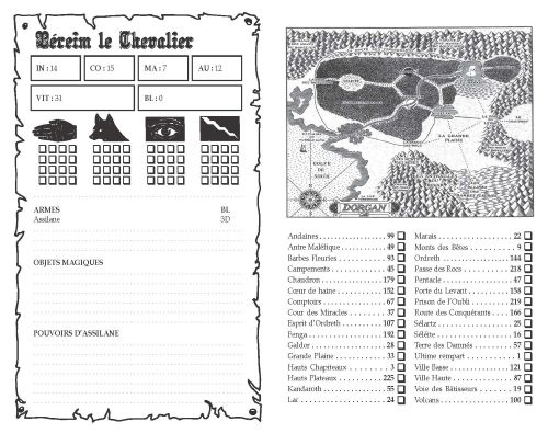 La partie de droite permettra de prendre des notes et tracer une carte. Vous en aurez grand besoin pour ne pas vous égarer dans la forêt et les dédales de la Dent du Dragon puis par la suite la forteresse inexpugnable du Maitre du Feu