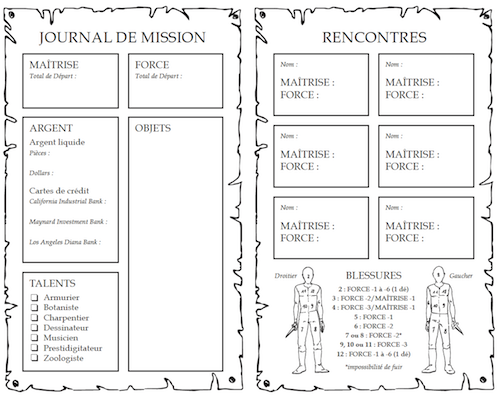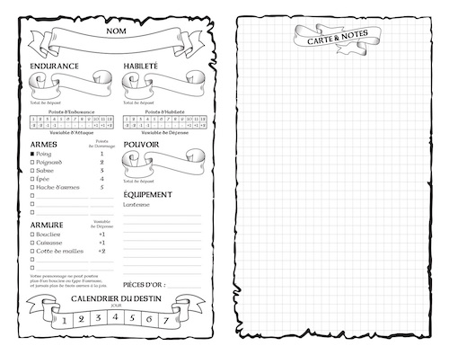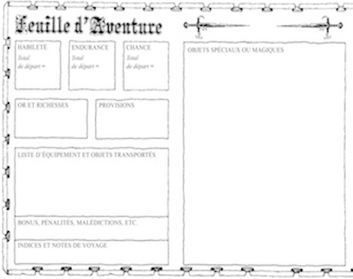 Une fiche d'aventure pour jouer aux deux livres de la mini collection.